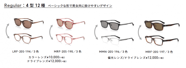 ・Regular(レギュラー):4型12種(プレート:カラーレンズ、ドライブレンズ、偏光レンズ)