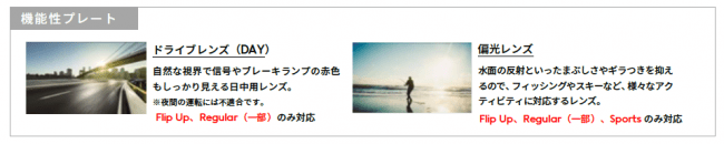 ・Flip Up(フリップアップ):2型6種(プレート:偏光レンズ、ドライブレンズ)