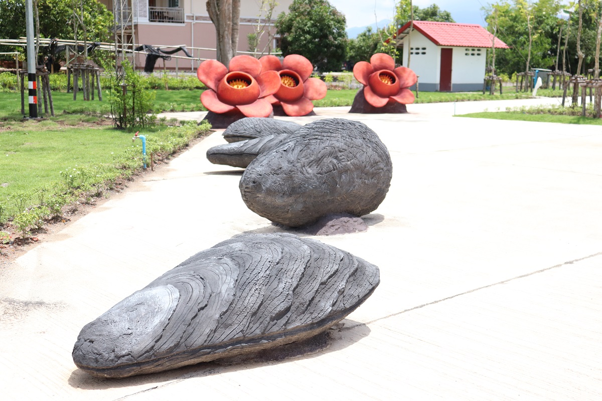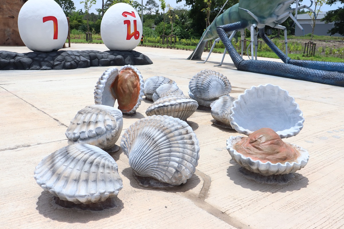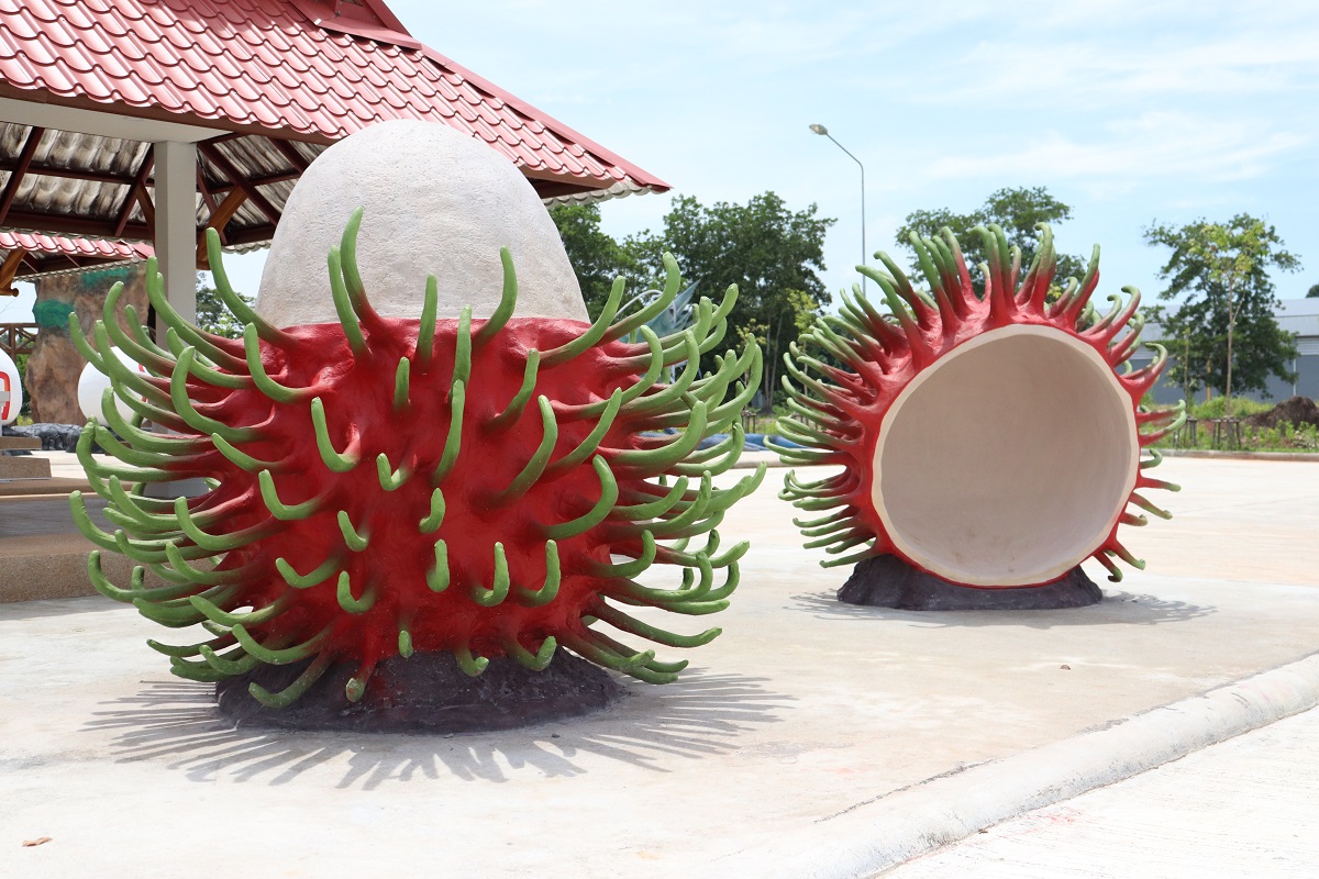 อีกทั้งการนำประติมากรรมปูนปั้นซึ่งเป็นเอกลักษณ์ต่างๆ ทั้งของกินและแหล่งท่องเที่ยวสำคัญที่มีชื่อเสียงของจังหวัดสุราษฎร์ธานี เช่น เงาะโรงเรียนนาสาร ไข่เค็มไชยา หอยนางรมกาญจนดิษฐ์ กุ้งแม่น้ำในแม่น้ำตาปี ดอกบัวผุดอำเภอพนม เขาสามเกลอในเขื่อนรัชชประภา