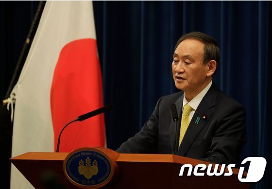 | 스가 요시히데 일본 총리가 4일 오후 총리관저에서 기자회견을 하고 있다. © AFP=뉴스1 |