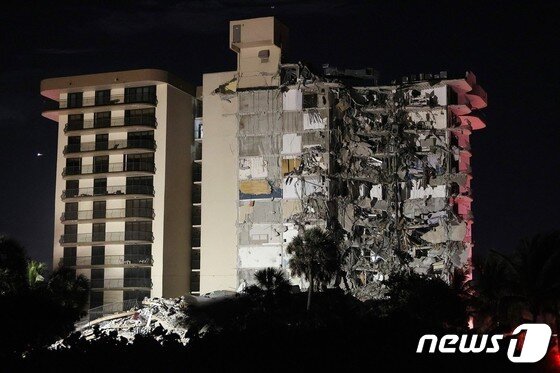 | 미국 플로리다주 마아애미 데이드 카운티에 있는 12층짜리 건물 일부가 붕괴되면서 최소 1명이 사망했다.© AFP=뉴스1 |